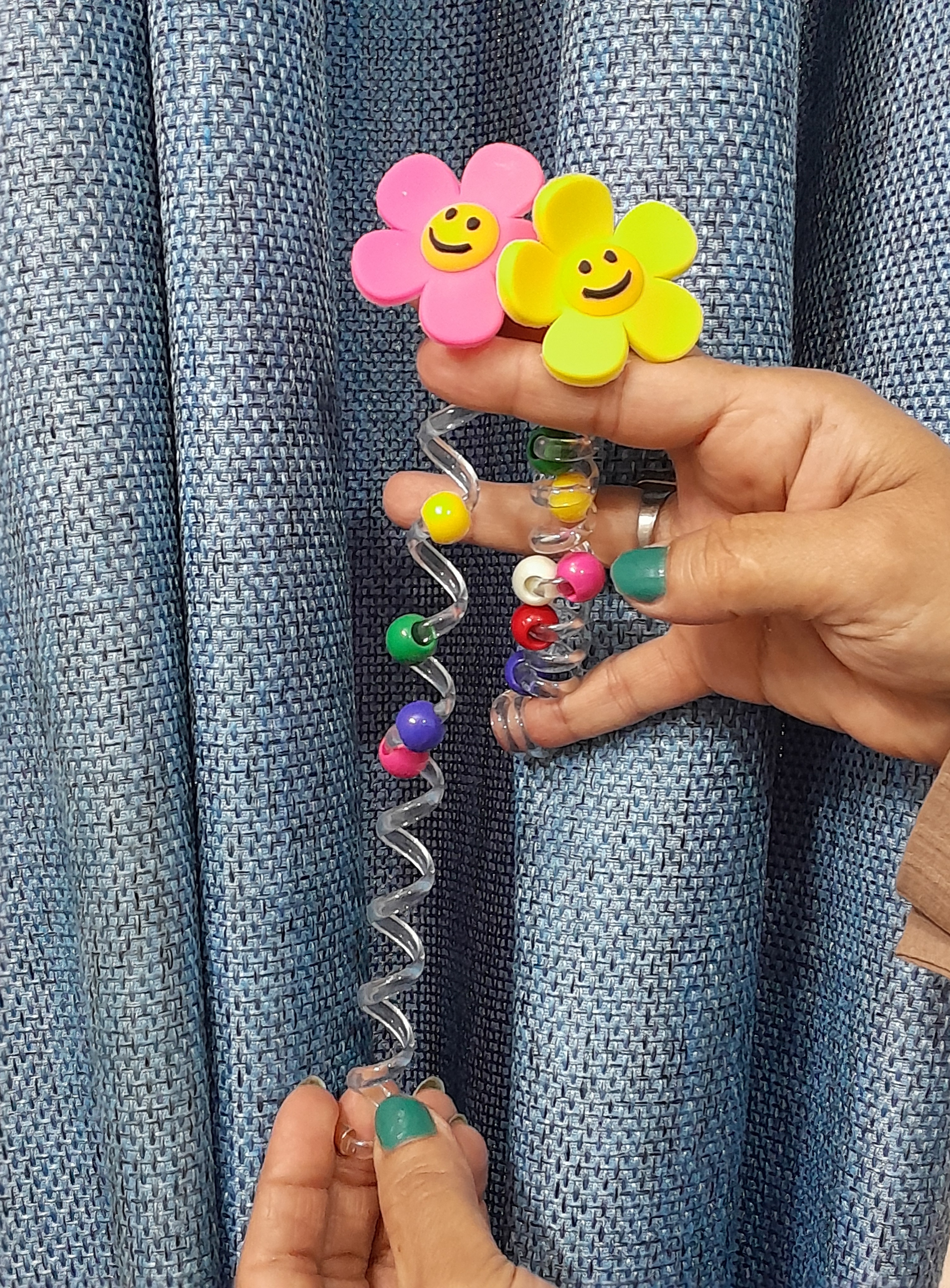 فنر موی پیکسل دار طرح آفتابگردان_ با مهره های رنگی و جذاب _ بصورت آویز و هم جمع کردن مو _به دور مو پیچ میدهیم و بعد از چند ساعت موی فر و قشنگ به شما تحویل میدهد _ضد آب و قابل شستشو